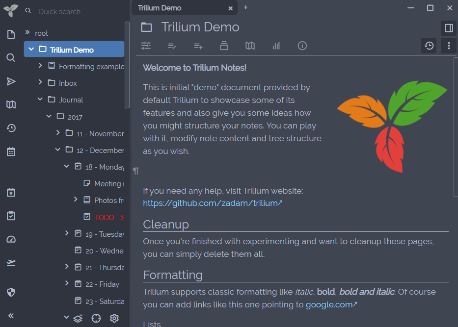 Trilium还允许您创建不与主题关联的自定义CSS。这在脚本编写的环境中很有用,例如,您可能希望更改树中笔记的颜色(如任务管理器中所使用的)。