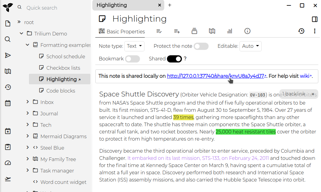您可以将#shareRoot属性添加到文件夹或笔记中,当您访问http://domain/share时,它将被链接。这可以更容易地将 Trilium 用作一个成熟的网站,因为您可以创建一个笔记来充当“主页”。